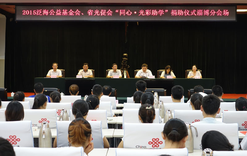 7月9日下午,省委统战部举办2015年泛海公益基金会、山东省光彩事业促进会“同心·光彩助学行动”捐助仪式视频会议。省委统战部副部长、省工商联党组书记孙孺声宣读资助决定,省委常委、统战部部长吴翠云出席主会场会议并讲话。我市组织收听收看。市委统战部常务副部长、市政协副秘书长国先彧出席淄博分会场会议并讲话,市委统战部副部长、市工商联党组书记路盛芝主持会议。