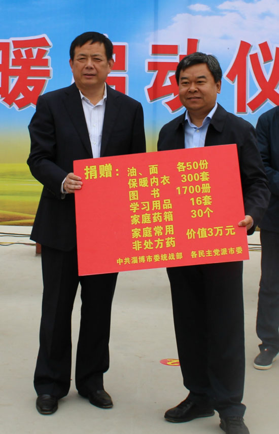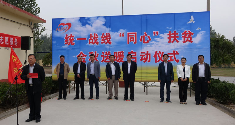 在第三个全国扶贫日来临之际,按照统一战线“同心”扶贫攻坚行动总体部署,10月15日,市委统战部组织统一战线六支“同心”志愿服务团队,赴高青县常家镇郑庙管区开展统一战线“同心”扶贫 金秋送暖活动。市委统战部常务副部长、市政协副秘书长国先彧代表市委统战部和各民主党派市委向常家镇捐赠扶贫物资。市委统战部副部长、市工商联党组书记吕爱国主持启动仪式。各民主党派市委、高青县有关领导出席活动。